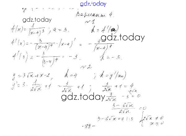 На страницах сайта gdz.today вы найдете учебный и вспомогательный материал, направленный на улучшения знаний школьной программы. ГДЗ - онлайн мир знаний СР-41. Уравнение касательной к графику функции Решение к главе 5. Производная вариант 4 Самостоятельным работам по Алгебре для 10 класса Александрова Базовый уровень Мнемозина 2017