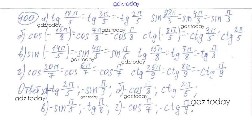 Ответы к Решения к упражнениям 100 Учебнику по Алгебре для 10-11 класса Колмогоров, Абрамов Просвещение 2008