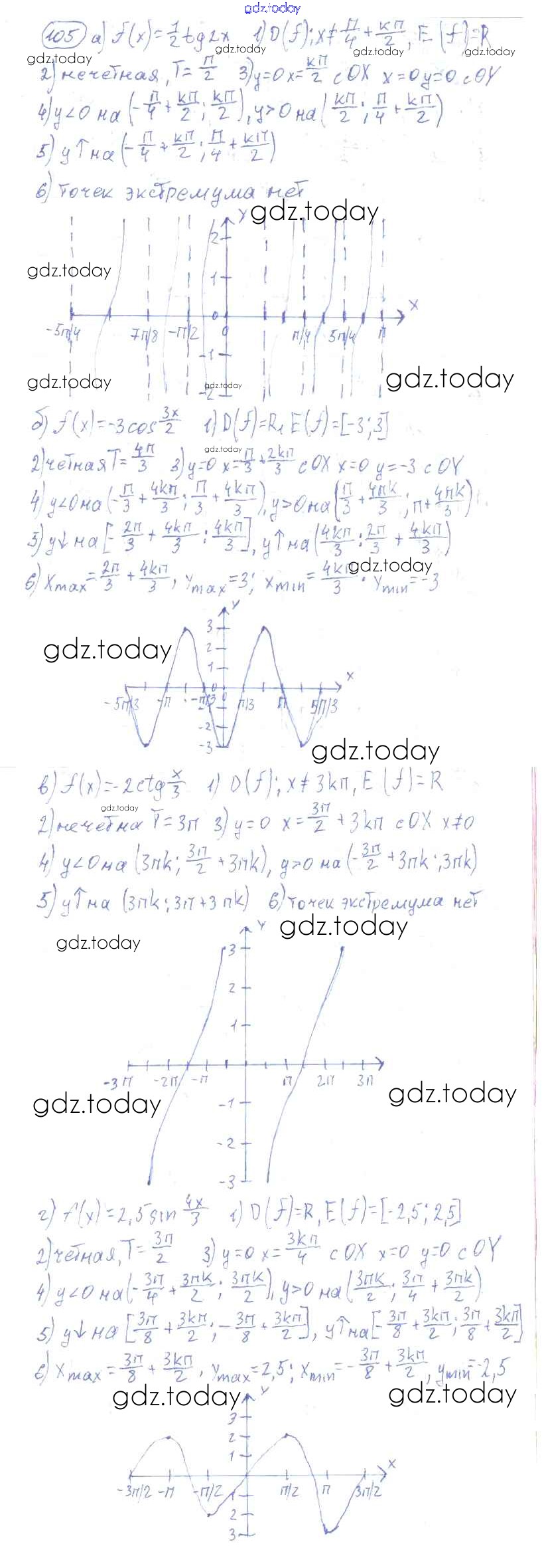 Ответы к Решения к упражнениям 105 Учебнику по Алгебре для 10-11 класса Колмогоров, Абрамов Просвещение 2008