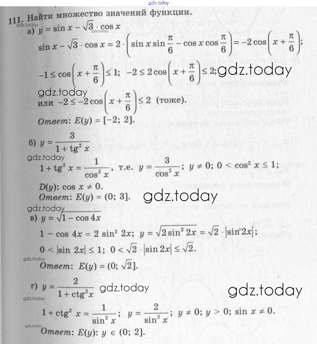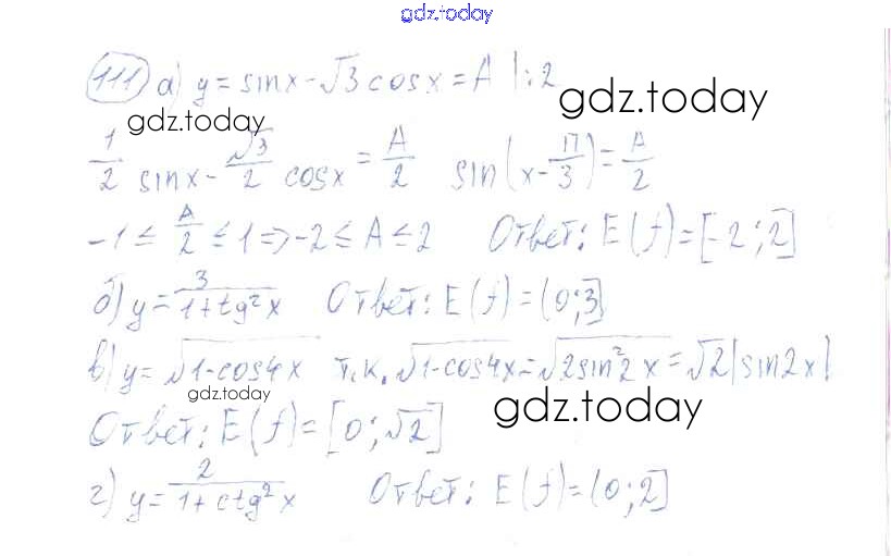 Ответы к Решения к упражнениям 111 Учебнику по Алгебре для 10-11 класса Колмогоров, Абрамов Просвещение 2008