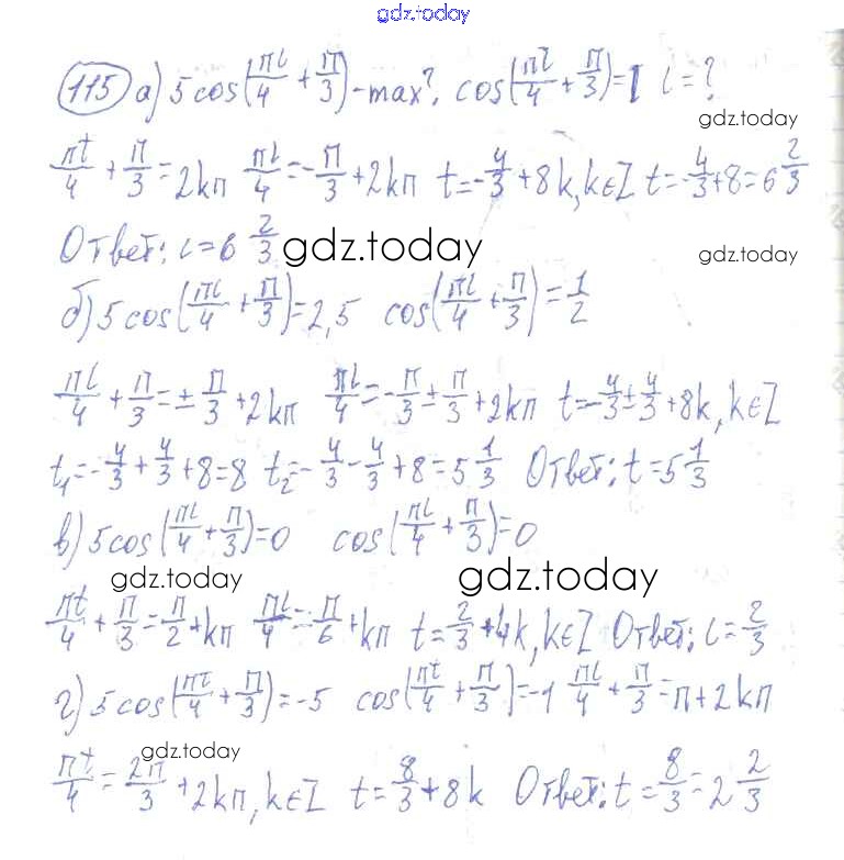 Ответы к Решения к упражнениям 115 Учебнику по Алгебре для 10-11 класса Колмогоров, Абрамов Просвещение 2008