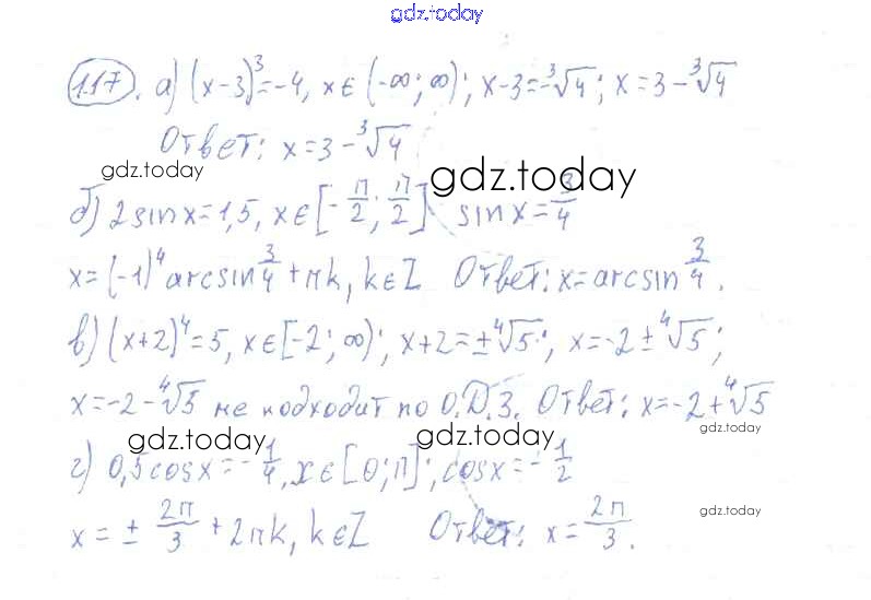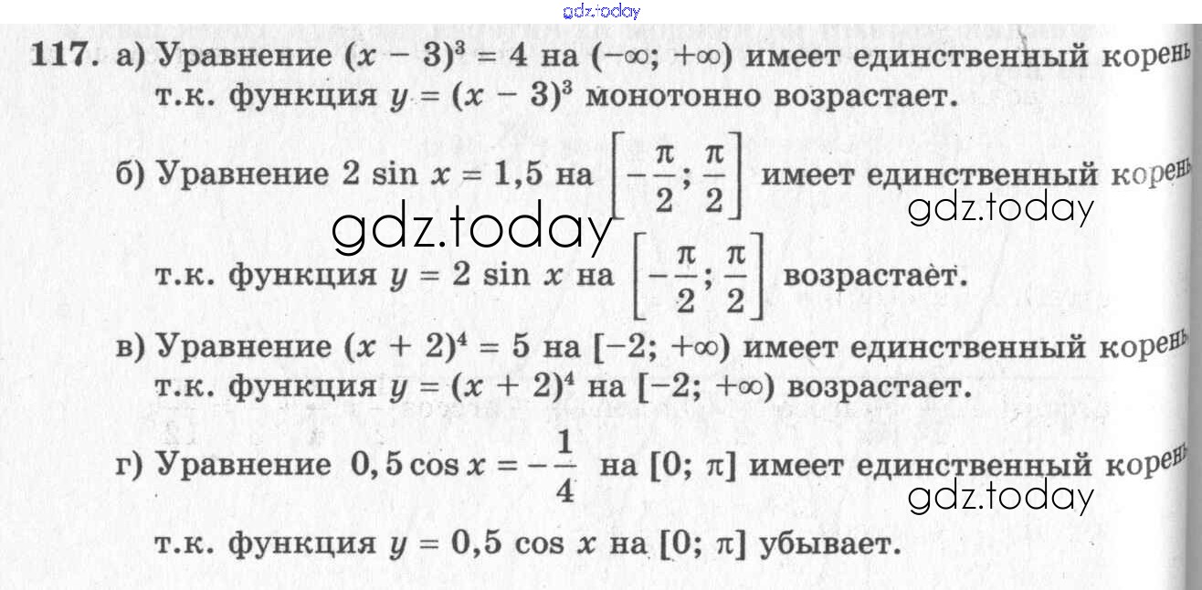 Ответы к Решения к упражнениям 117 Учебнику по Алгебре для 10-11 класса Колмогоров, Абрамов Просвещение 2008