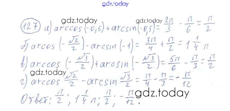 Ответы к Решения к упражнениям 127 Учебнику по Алгебре для 10-11 класса Колмогоров, Абрамов Просвещение 2008