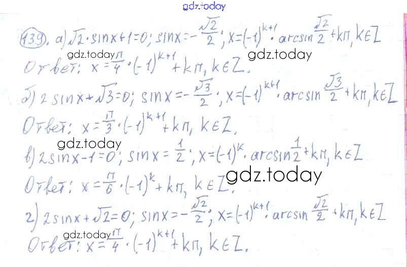 Ответы к Решения к упражнениям 139 Учебнику по Алгебре для 10-11 класса Колмогоров, Абрамов Просвещение 2008
