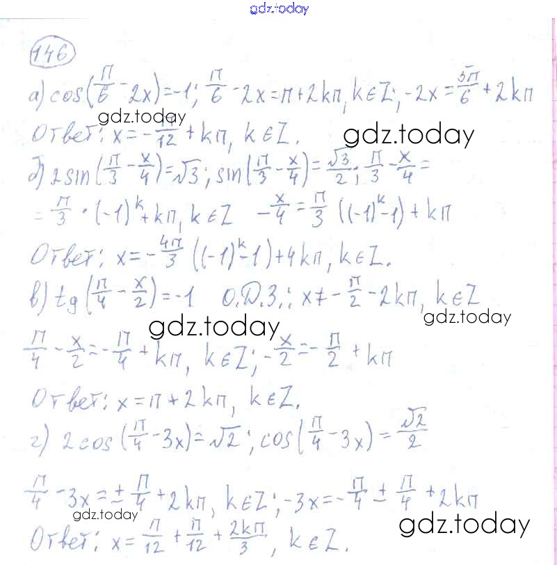Ответы к Решения к упражнениям 146 Учебнику по Алгебре для 10-11 класса Колмогоров, Абрамов Просвещение 2008