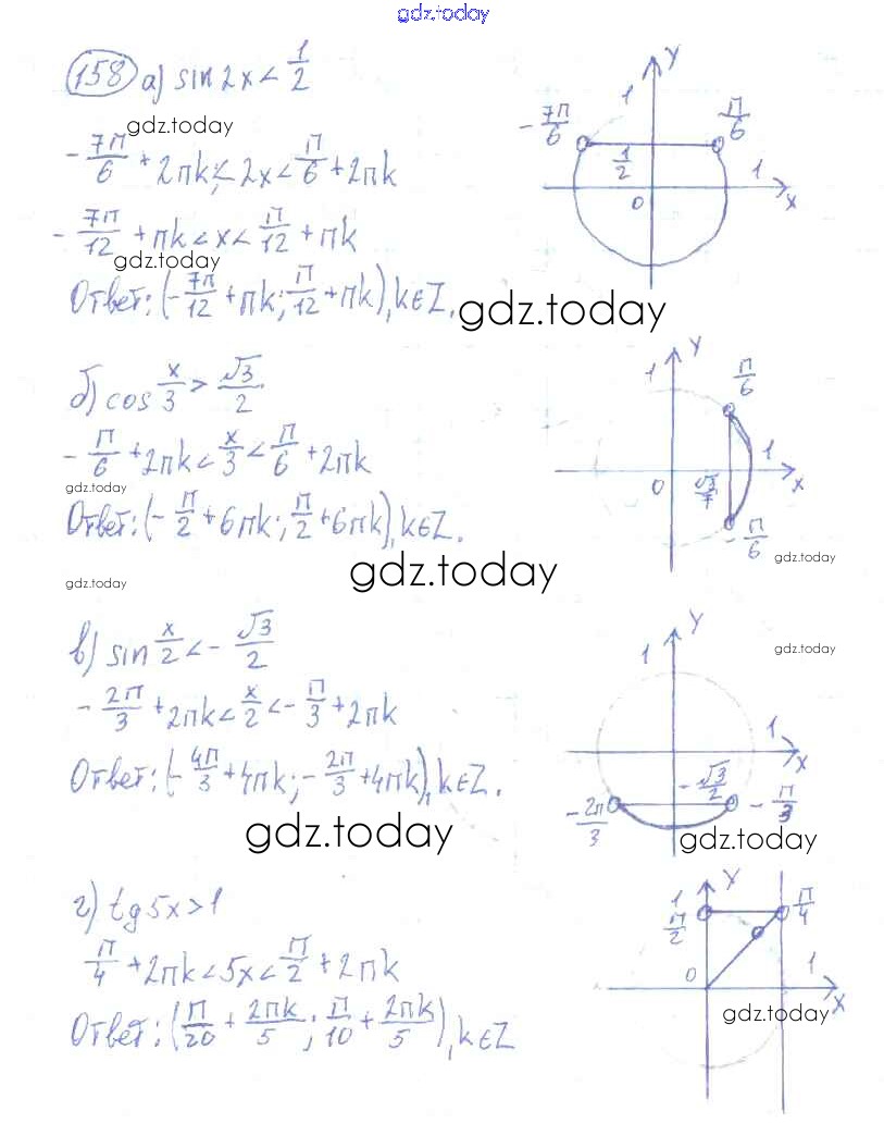 Ответы к Решения к упражнениям 158 Учебнику по Алгебре для 10-11 класса Колмогоров, Абрамов Просвещение 2008