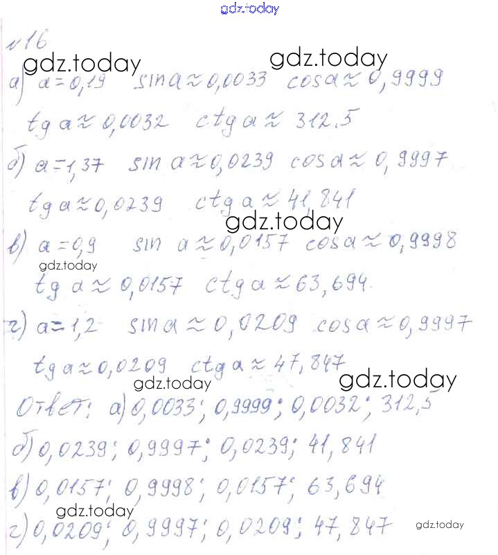 Ответы к Решения к упражнениям 16 Учебнику по Алгебре для 10-11 класса Колмогоров, Абрамов Просвещение 2008
