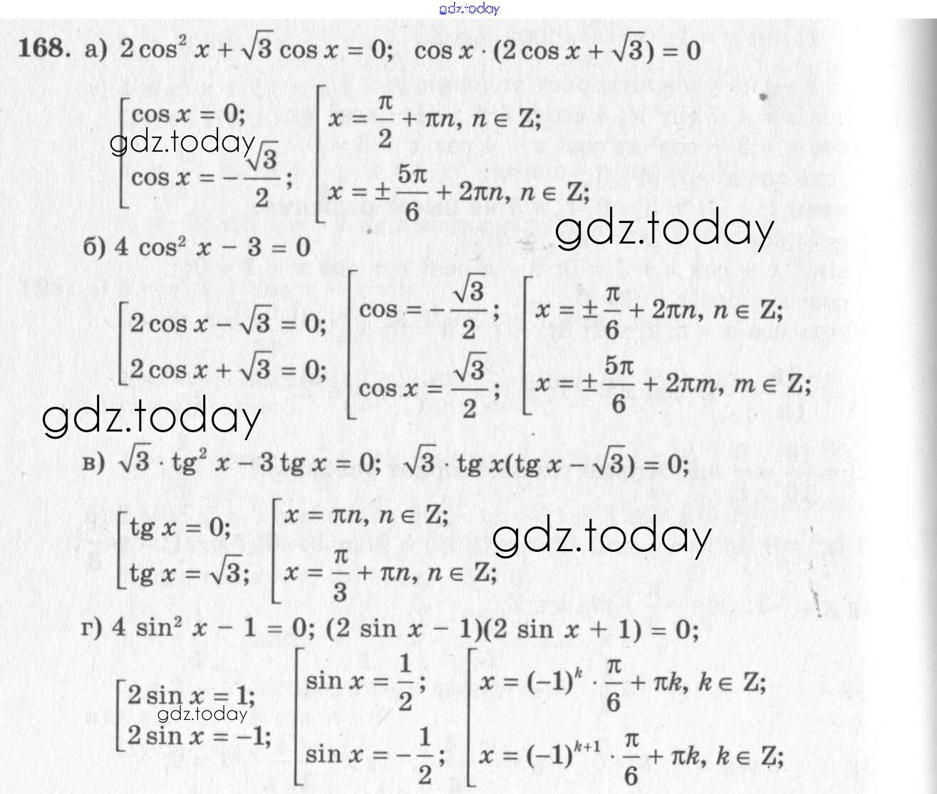 На страницах сайта gdz.today вы найдете учебный и вспомогательный материал, направленный на улучшения знаний школьной программы. ГДЗ - онлайн мир знаний Решения к упражнениям 168 Учебнику по Алгебре для 10-11 класса Колмогоров, Абрамов Просвещение 2008