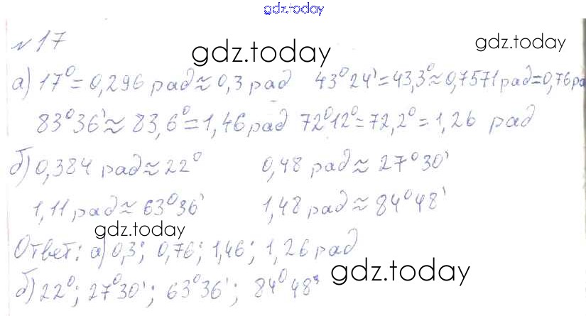 Ответы к Решения к упражнениям 17 Учебнику по Алгебре для 10-11 класса Колмогоров, Абрамов Просвещение 2008
