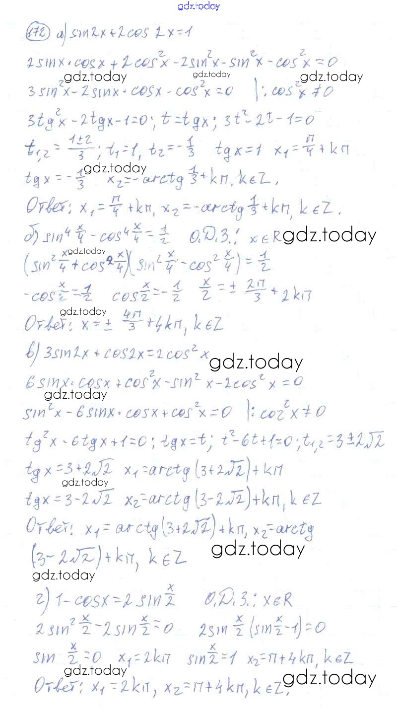 Ответы к Решения к упражнениям 172 Учебнику по Алгебре для 10-11 класса Колмогоров, Абрамов Просвещение 2008