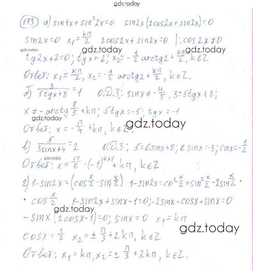 Ответы к Решения к упражнениям 173 Учебнику по Алгебре для 10-11 класса Колмогоров, Абрамов Просвещение 2008