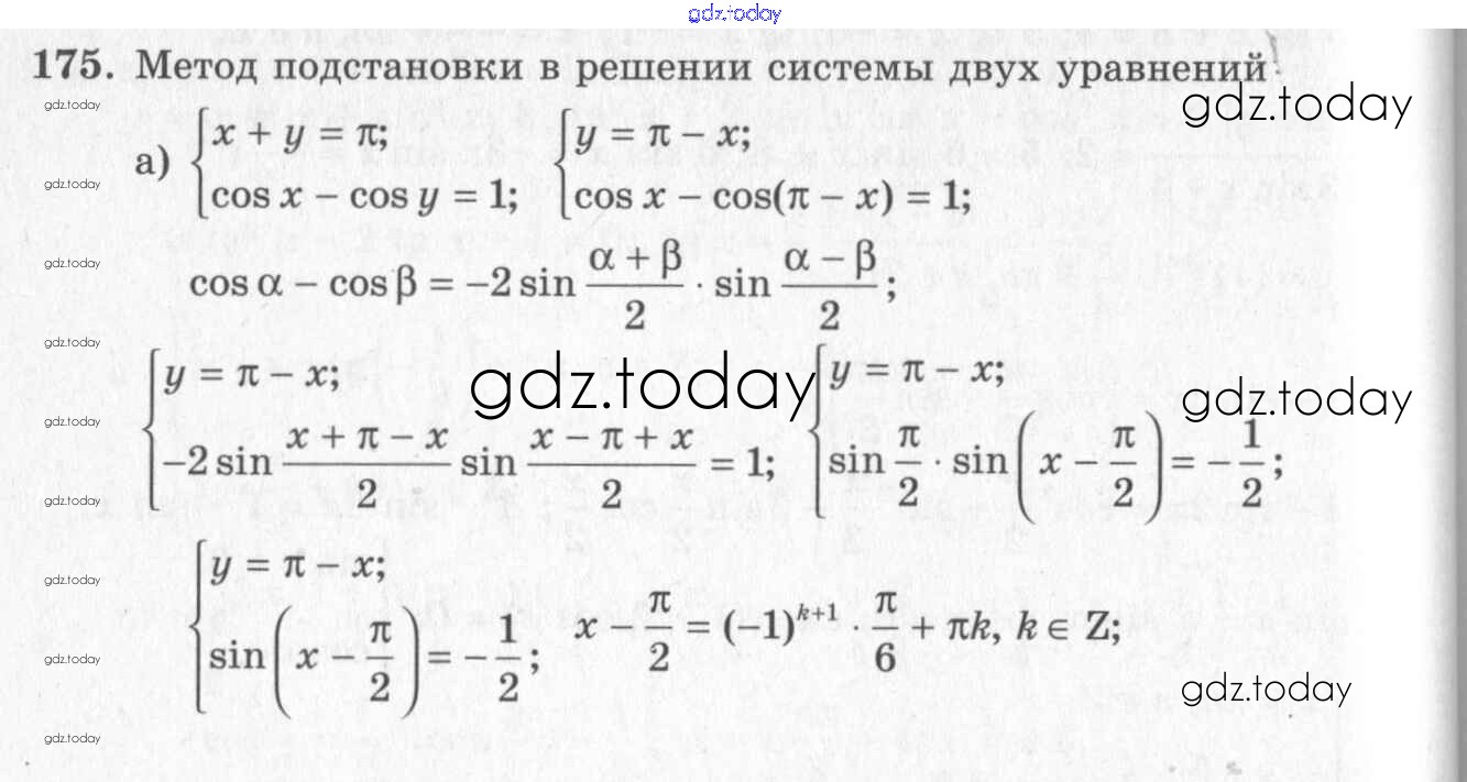 На страницах сайта gdz.today вы найдете учебный и вспомогательный материал, направленный на улучшения знаний школьной программы. ГДЗ - онлайн мир знаний Решения к упражнениям 175 Учебнику по Алгебре для 10-11 класса Колмогоров, Абрамов Просвещение 2008