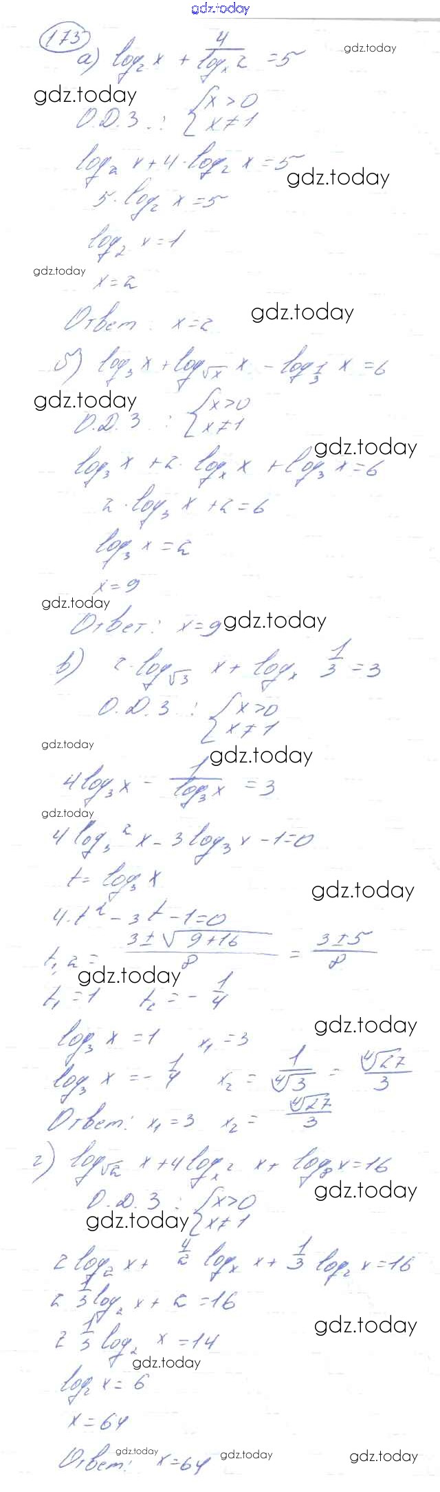 Ответы к Решения к разделу повторение 173 Учебнику по Алгебре для 10-11 класса Колмогоров, Абрамов Просвещение 2008