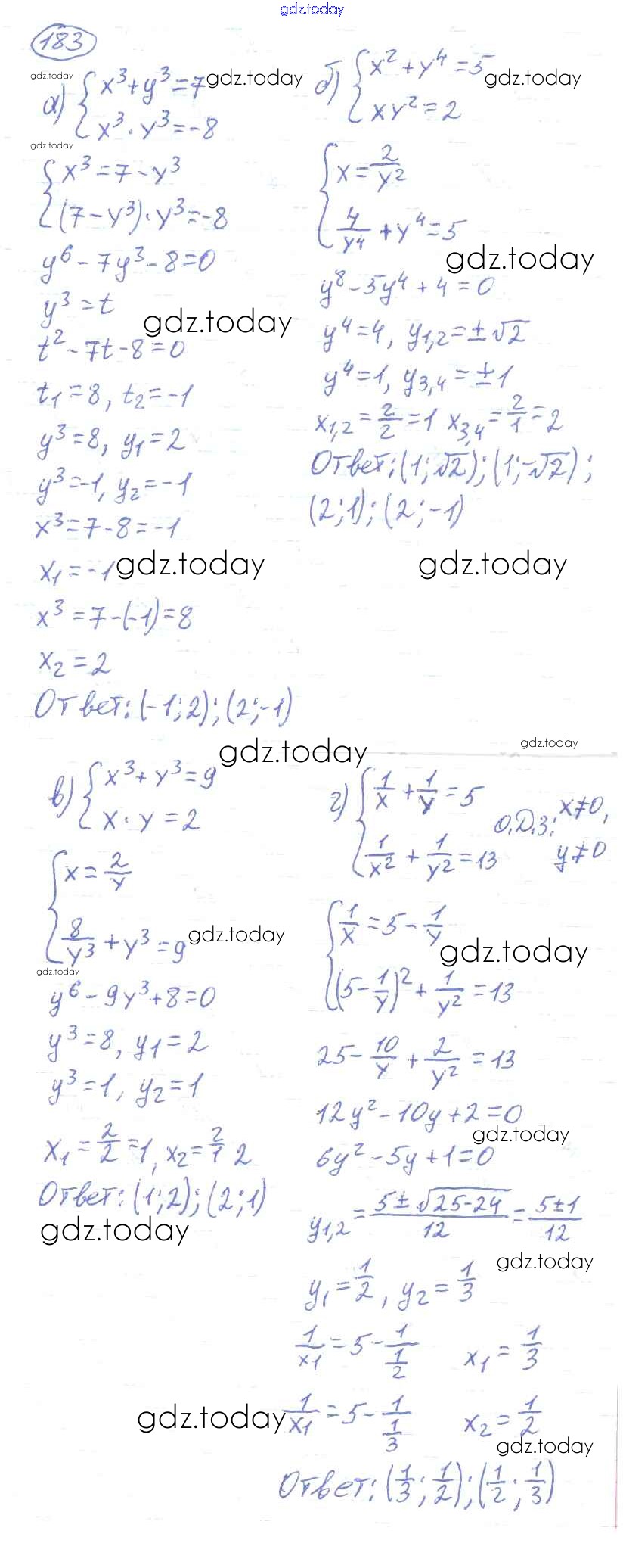 Ответы к Решения к разделу повторение 183 Учебнику по Алгебре для 10-11 класса Колмогоров, Абрамов Просвещение 2008