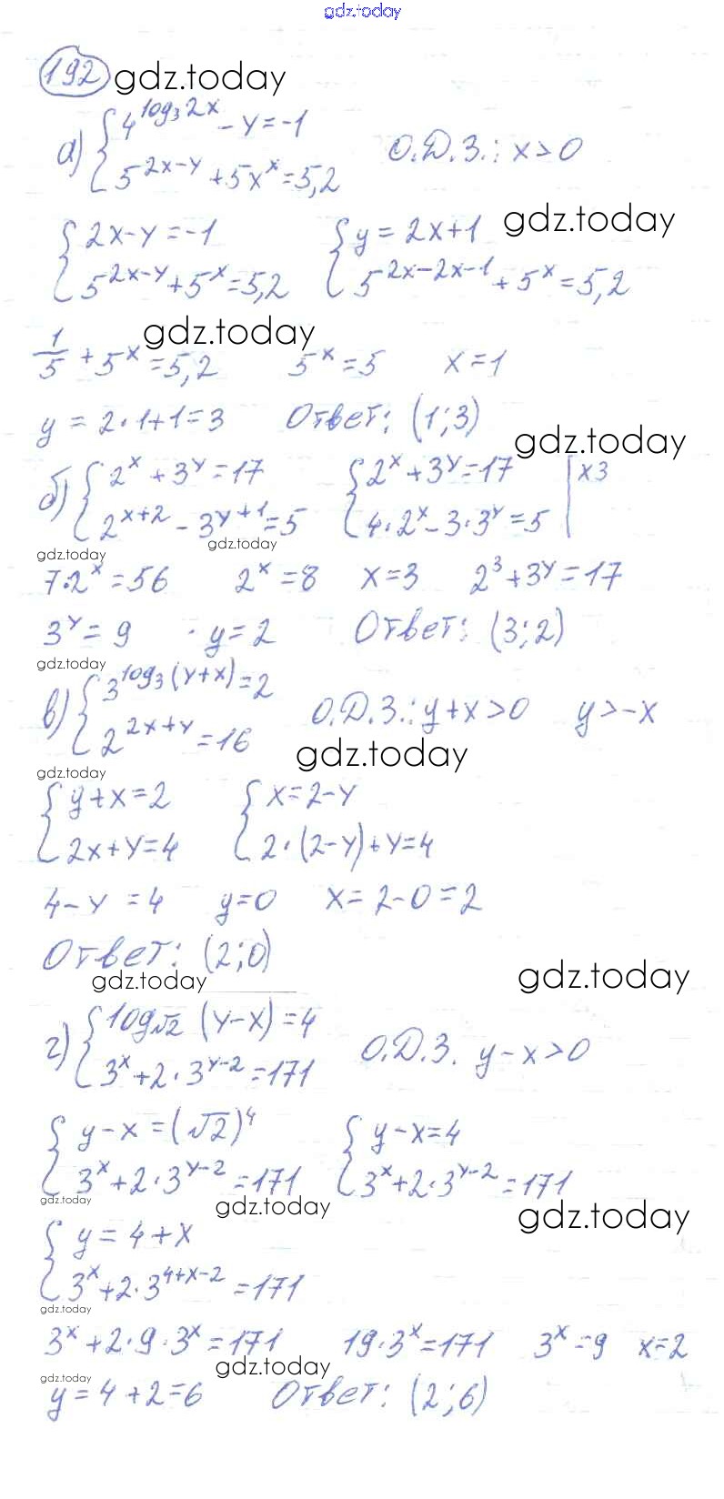 Ответы к Решения к разделу повторение 192 Учебнику по Алгебре для 10-11 класса Колмогоров, Абрамов Просвещение 2008