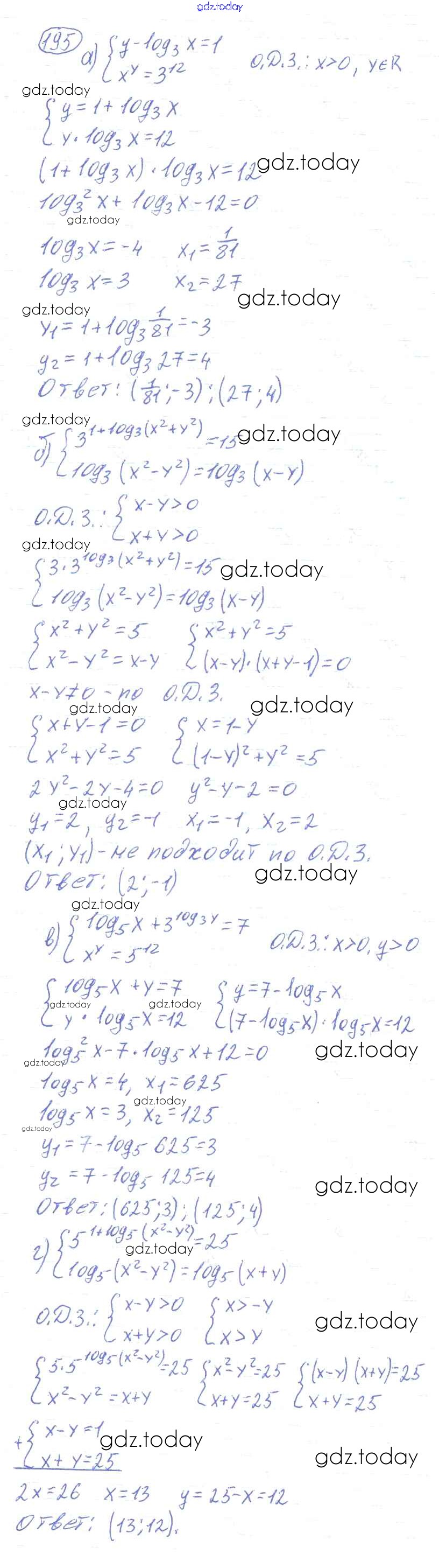 Ответы к Решения к разделу повторение 195 Учебнику по Алгебре для 10-11 класса Колмогоров, Абрамов Просвещение 2008