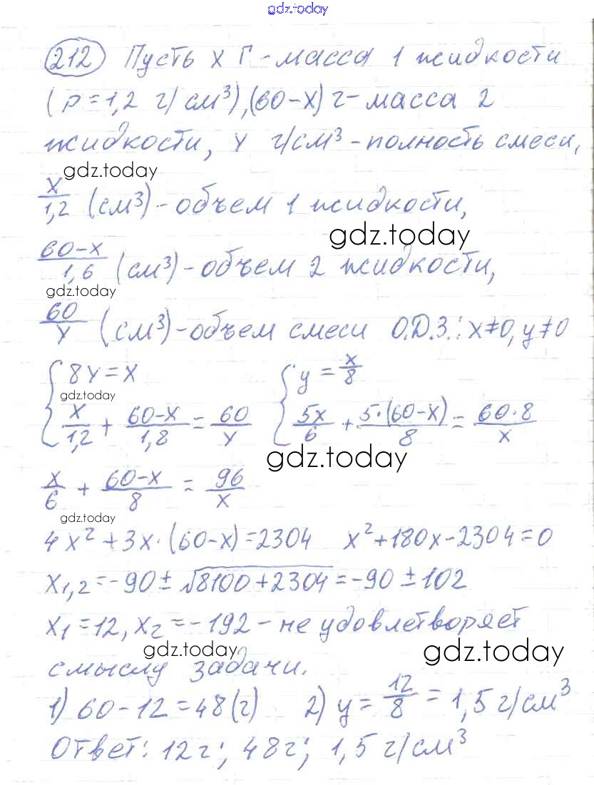 Ответы к Решения к разделу повторение 212 Учебнику по Алгебре для 10-11 класса Колмогоров, Абрамов Просвещение 2008