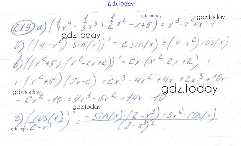 На страницах сайта gdz.today вы найдете учебный и вспомогательный материал, направленный на улучшения знаний школьной программы. ГДЗ - онлайн мир знаний Решения к разделу повторение 219 Учебнику по Алгебре для 10-11 класса Колмогоров, Абрамов Просвещение 2008