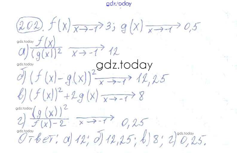 Ответы к Решения к упражнениям 202 Учебнику по Алгебре для 10-11 класса Колмогоров, Абрамов Просвещение 2008