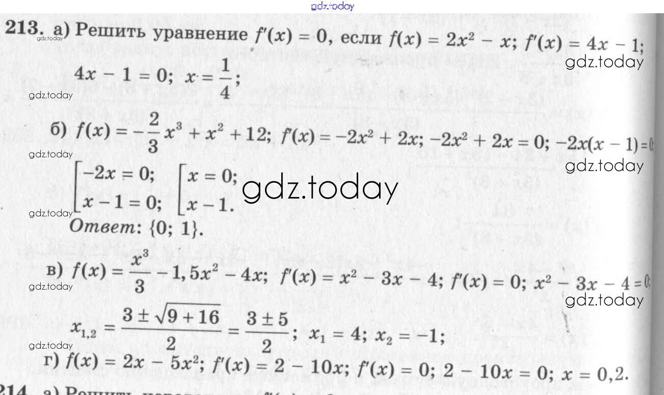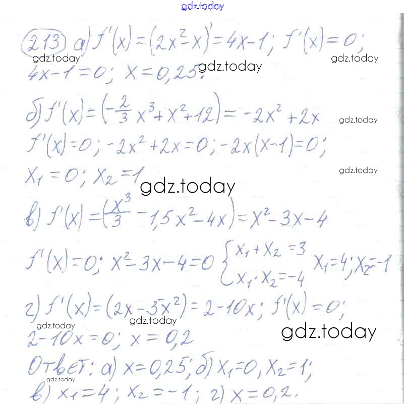 Ответы к Решения к упражнениям 213 Учебнику по Алгебре для 10-11 класса Колмогоров, Абрамов Просвещение 2008