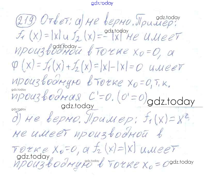 На страницах сайта gdz.today вы найдете учебный и вспомогательный материал, направленный на улучшения знаний школьной программы. ГДЗ - онлайн мир знаний Решения к упражнениям 219 Учебнику по Алгебре для 10-11 класса Колмогоров, Абрамов Просвещение 2008