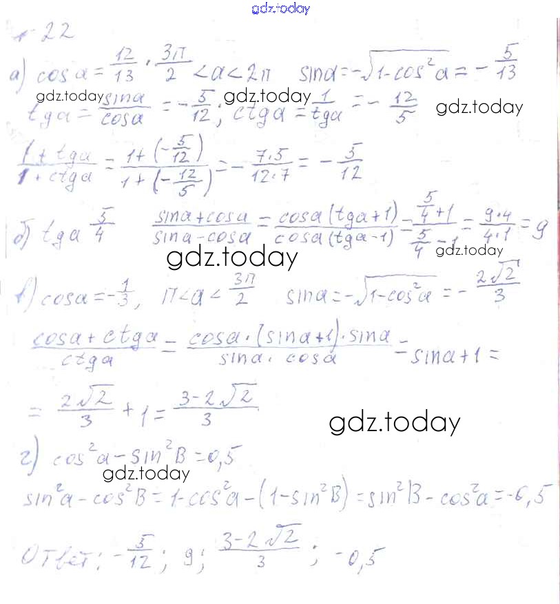 На страницах сайта gdz.today вы найдете учебный и вспомогательный материал, направленный на улучшения знаний школьной программы. ГДЗ - онлайн мир знаний Решения к упражнениям 22 Учебнику по Алгебре для 10-11 класса Колмогоров, Абрамов Просвещение 2008
