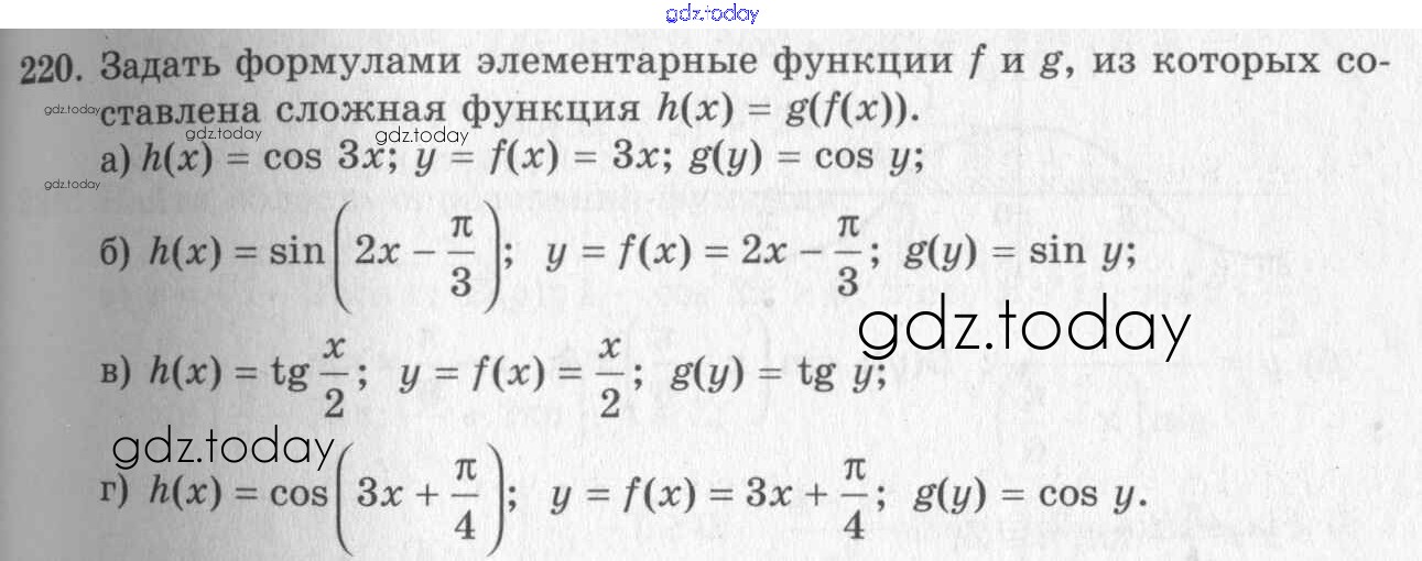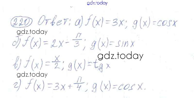 На страницах сайта gdz.today вы найдете учебный и вспомогательный материал, направленный на улучшения знаний школьной программы. ГДЗ - онлайн мир знаний Решения к упражнениям 220 Учебнику по Алгебре для 10-11 класса Колмогоров, Абрамов Просвещение 2008