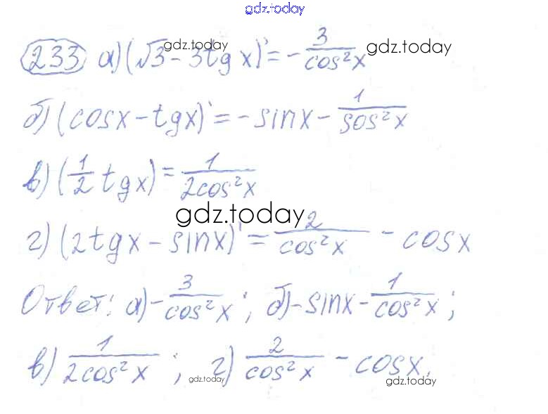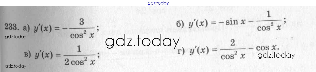 Ответы к Решения к упражнениям 233 Учебнику по Алгебре для 10-11 класса Колмогоров, Абрамов Просвещение 2008