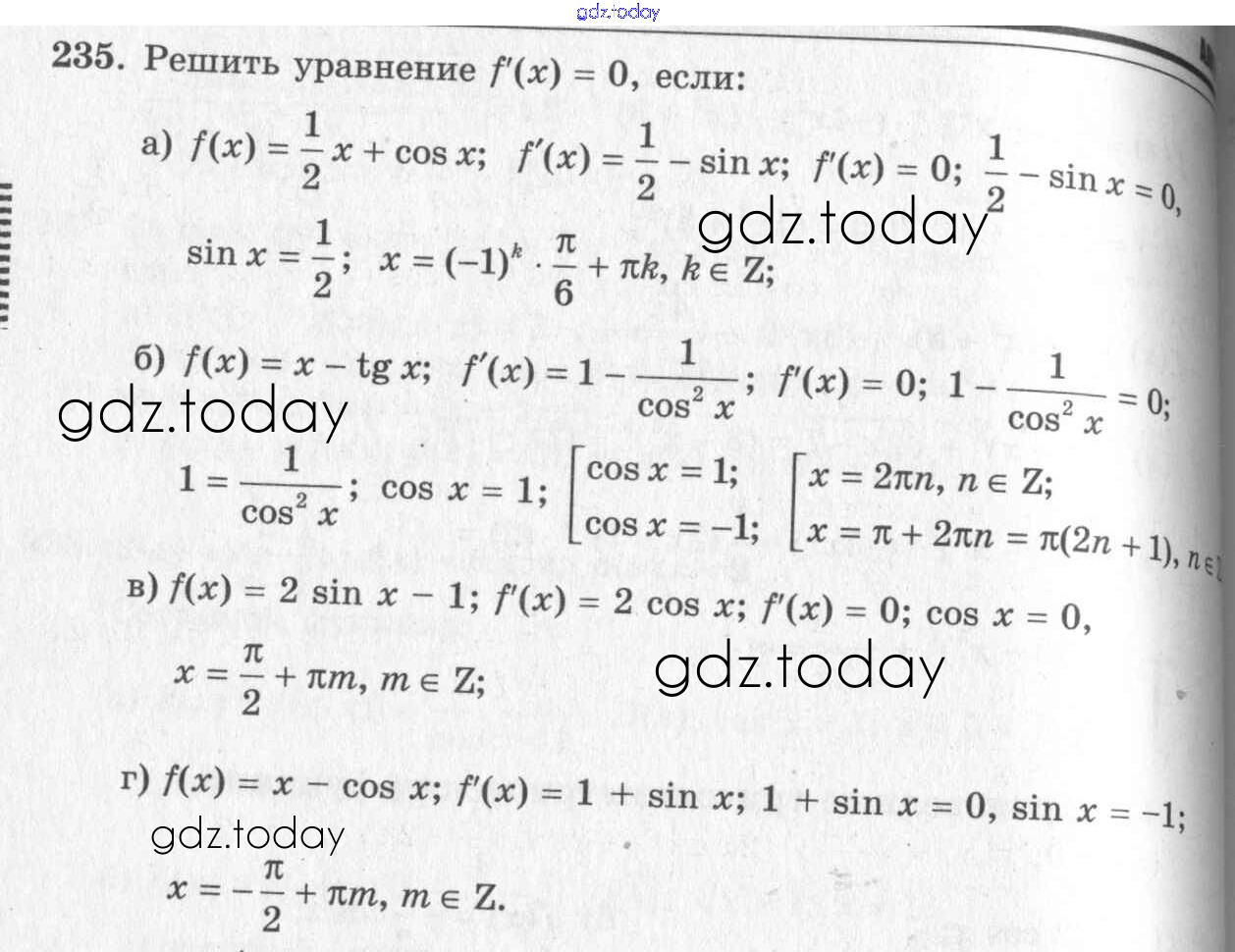 На страницах сайта gdz.today вы найдете учебный и вспомогательный материал, направленный на улучшения знаний школьной программы. ГДЗ - онлайн мир знаний Решения к упражнениям 235 Учебнику по Алгебре для 10-11 класса Колмогоров, Абрамов Просвещение 2008