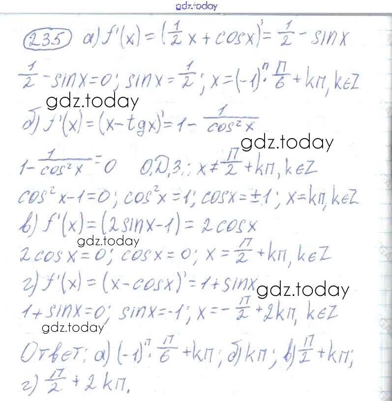 Ответы к Решения к упражнениям 235 Учебнику по Алгебре для 10-11 класса Колмогоров, Абрамов Просвещение 2008