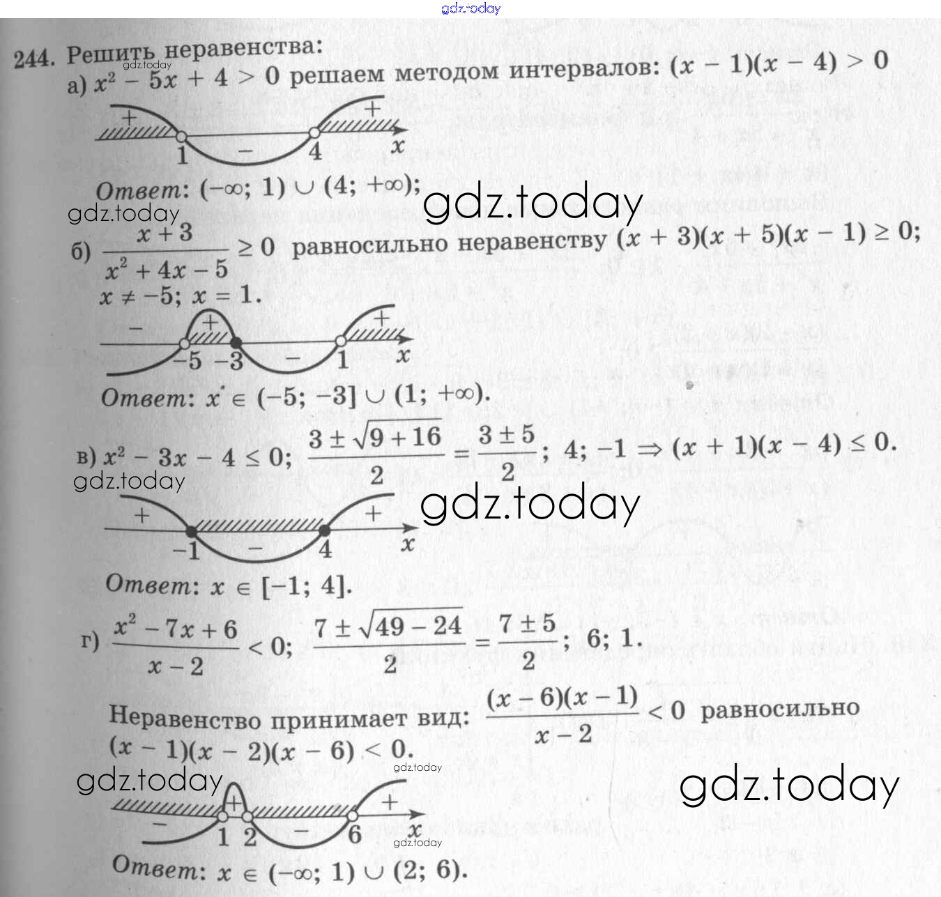 На страницах сайта gdz.today вы найдете учебный и вспомогательный материал, направленный на улучшения знаний школьной программы. ГДЗ - онлайн мир знаний Решения к упражнениям 244 Учебнику по Алгебре для 10-11 класса Колмогоров, Абрамов Просвещение 2008
