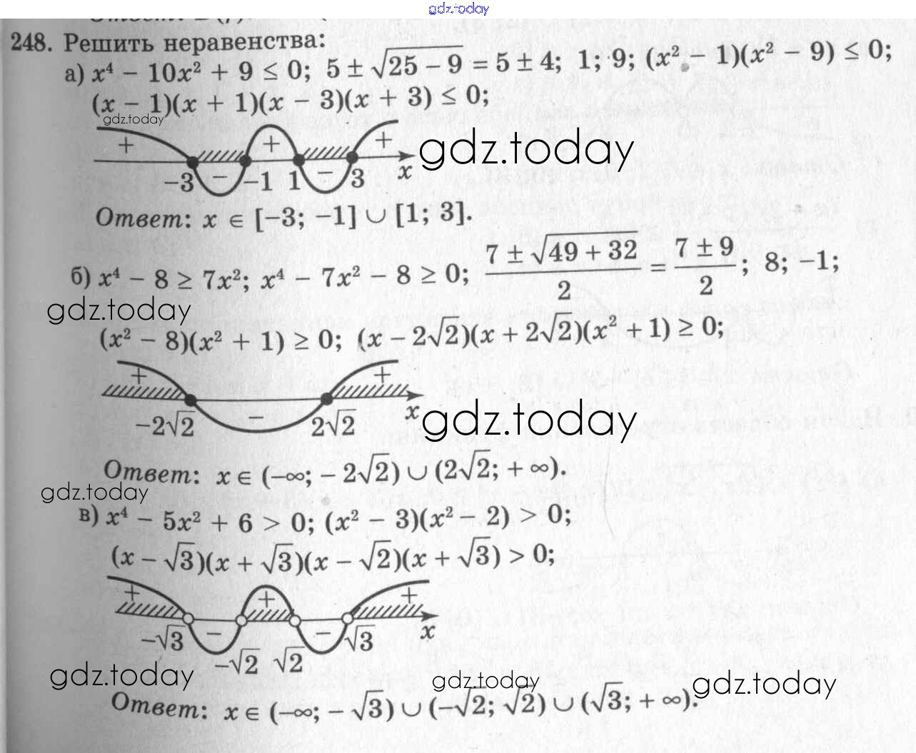 Ответы к Решения к упражнениям 248 Учебнику по Алгебре для 10-11 класса Колмогоров, Абрамов Просвещение 2008