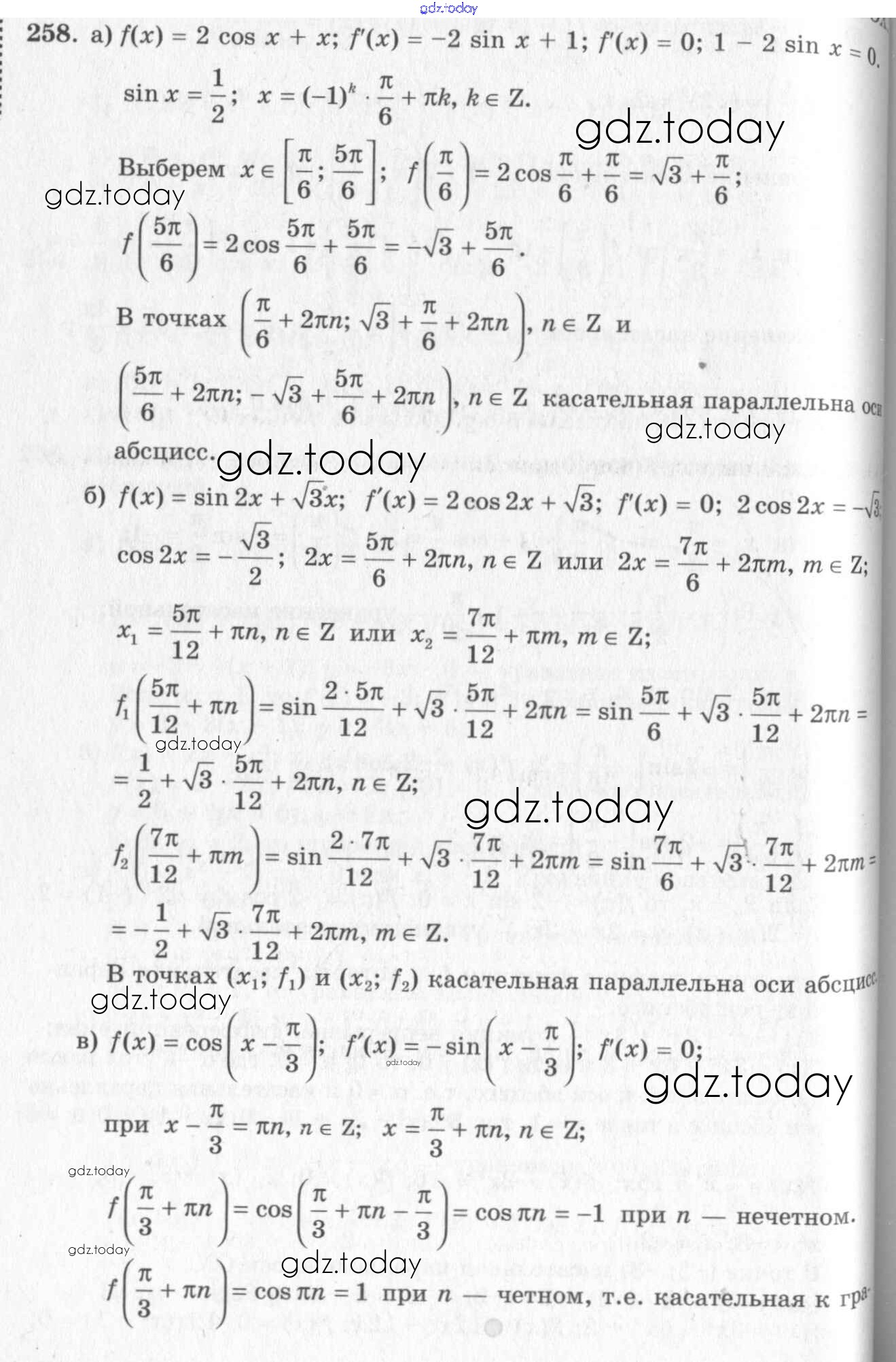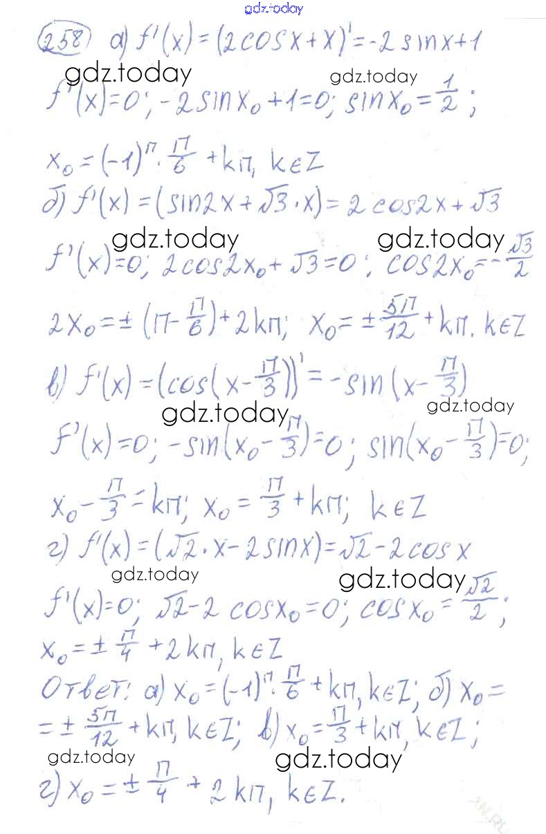 Ответы к Решения к упражнениям 258 Учебнику по Алгебре для 10-11 класса Колмогоров, Абрамов Просвещение 2008