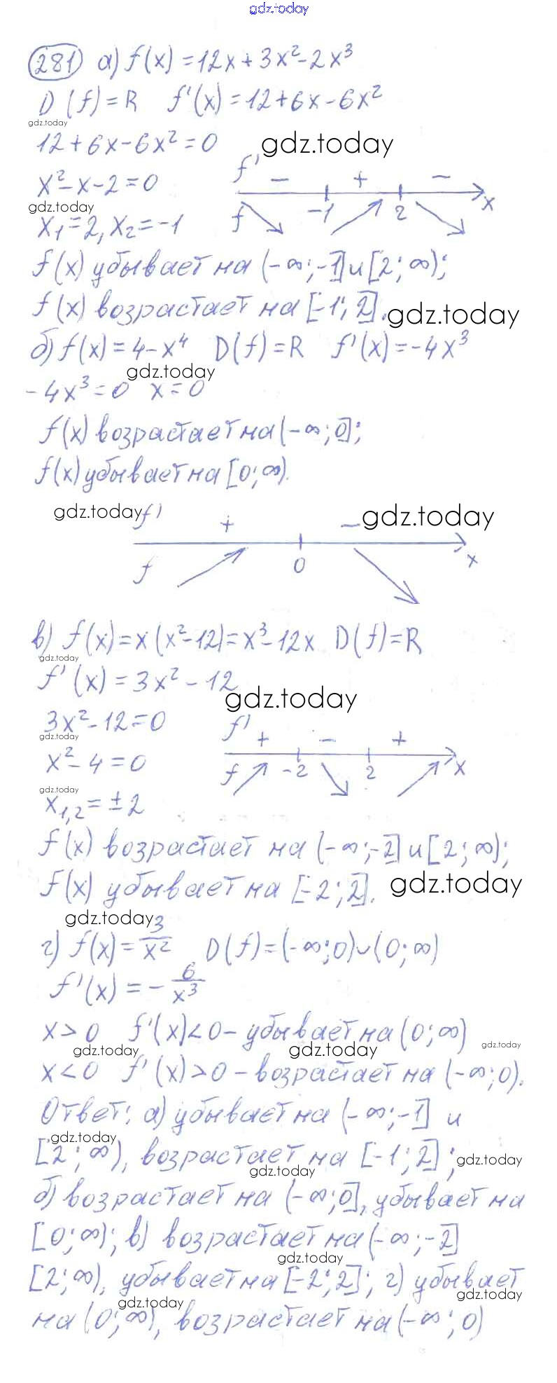 Ответы к Решения к упражнениям 281 Учебнику по Алгебре для 10-11 класса Колмогоров, Абрамов Просвещение 2008