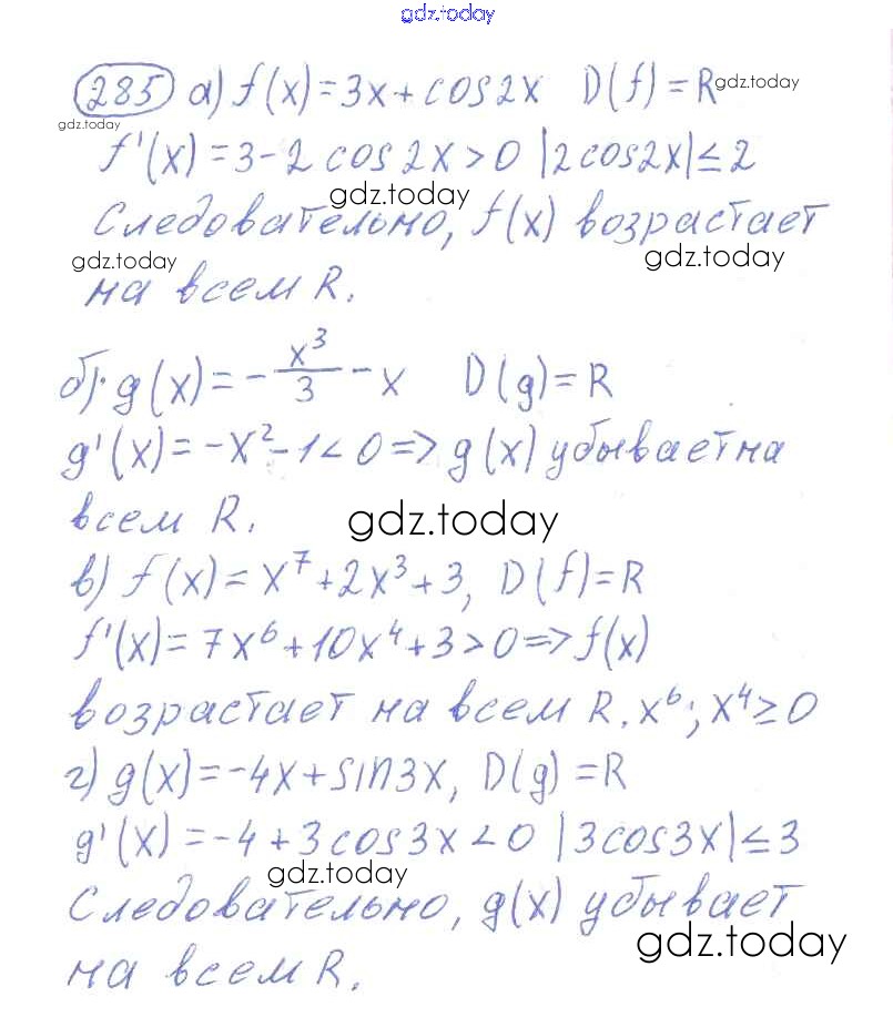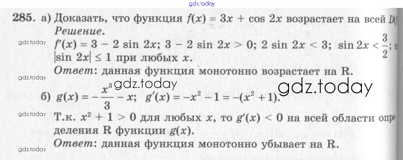 На страницах сайта gdz.today вы найдете учебный и вспомогательный материал, направленный на улучшения знаний школьной программы. ГДЗ - онлайн мир знаний Решения к упражнениям 285 Учебнику по Алгебре для 10-11 класса Колмогоров, Абрамов Просвещение 2008