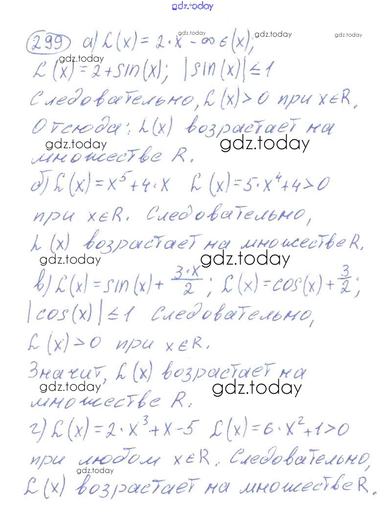 Ответы к Решения к упражнениям 299 Учебнику по Алгебре для 10-11 класса Колмогоров, Абрамов Просвещение 2008