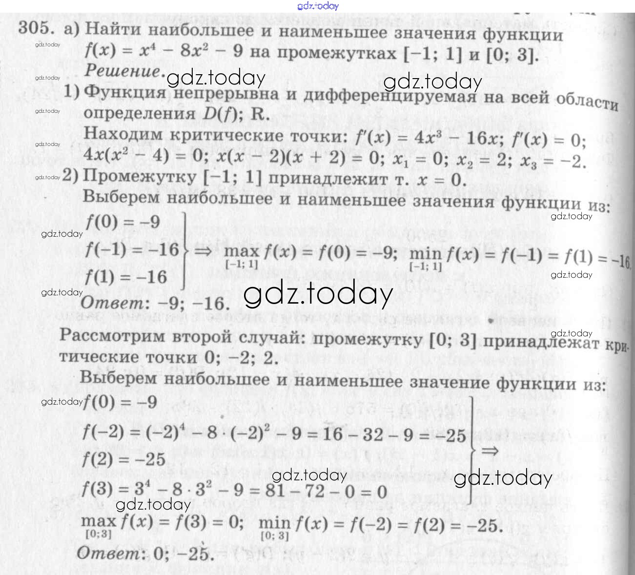 Ответы к Решения к упражнениям 305 Учебнику по Алгебре для 10-11 класса Колмогоров, Абрамов Просвещение 2008