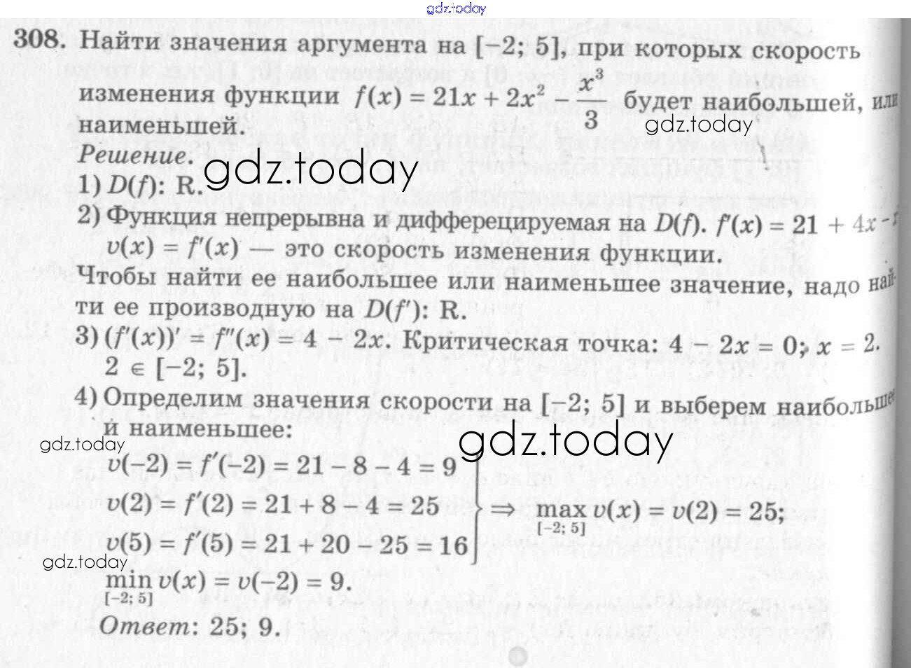 Ответы к Решения к упражнениям 308 Учебнику по Алгебре для 10-11 класса Колмогоров, Абрамов Просвещение 2008