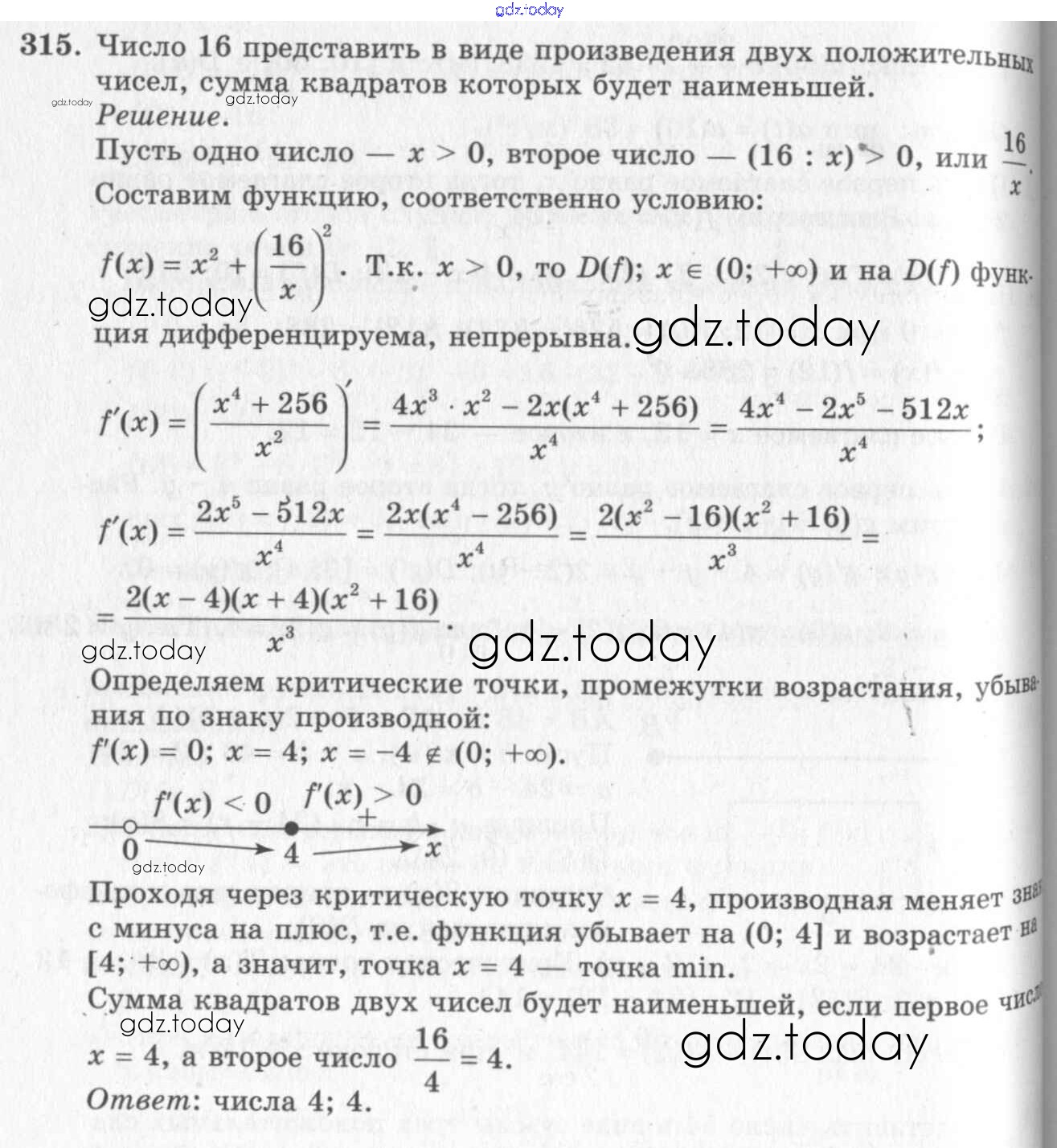 На страницах сайта gdz.today вы найдете учебный и вспомогательный материал, направленный на улучшения знаний школьной программы. ГДЗ - онлайн мир знаний Решения к упражнениям 315 Учебнику по Алгебре для 10-11 класса Колмогоров, Абрамов Просвещение 2008