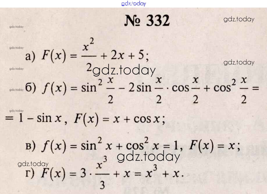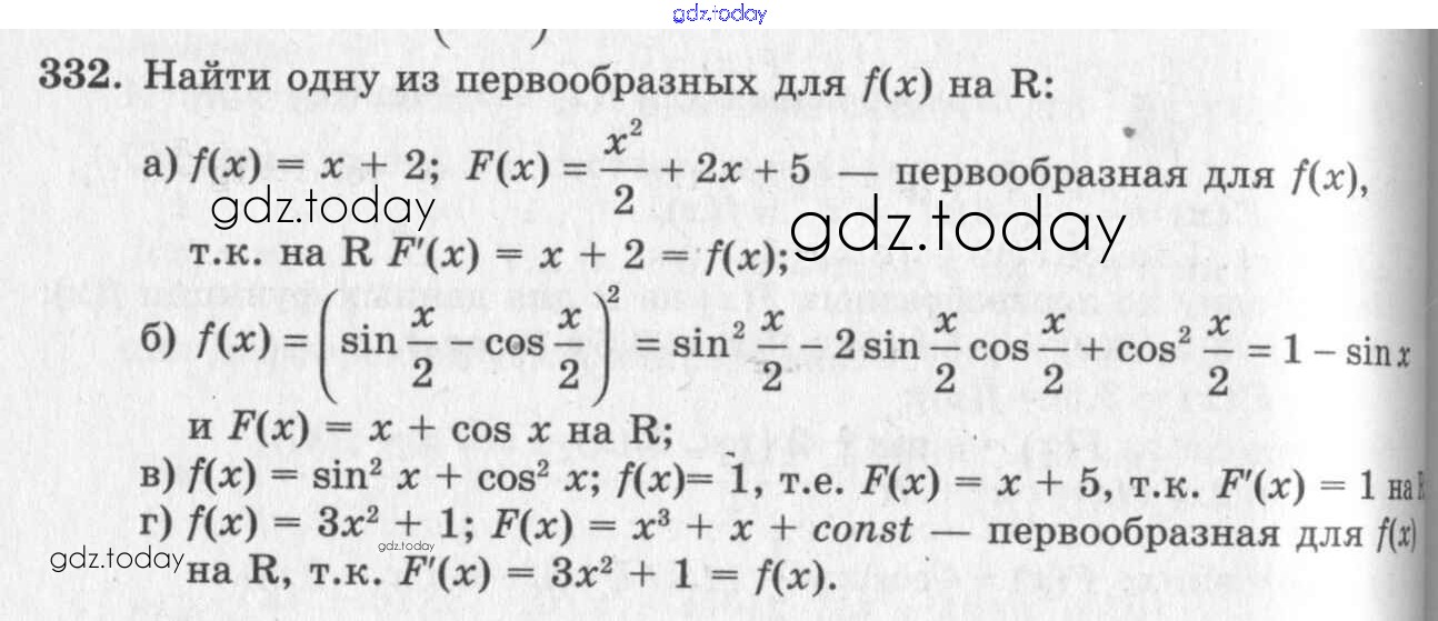 На страницах сайта gdz.today вы найдете учебный и вспомогательный материал, направленный на улучшения знаний школьной программы. ГДЗ - онлайн мир знаний Решения к упражнениям 332 Учебнику по Алгебре для 10-11 класса Колмогоров, Абрамов Просвещение 2008