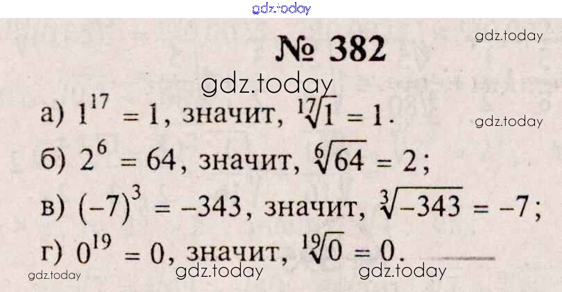 На страницах сайта gdz.today вы найдете учебный и вспомогательный материал, направленный на улучшения знаний школьной программы. ГДЗ - онлайн мир знаний Решения к упражнениям 382 Учебнику по Алгебре для 10-11 класса Колмогоров, Абрамов Просвещение 2008