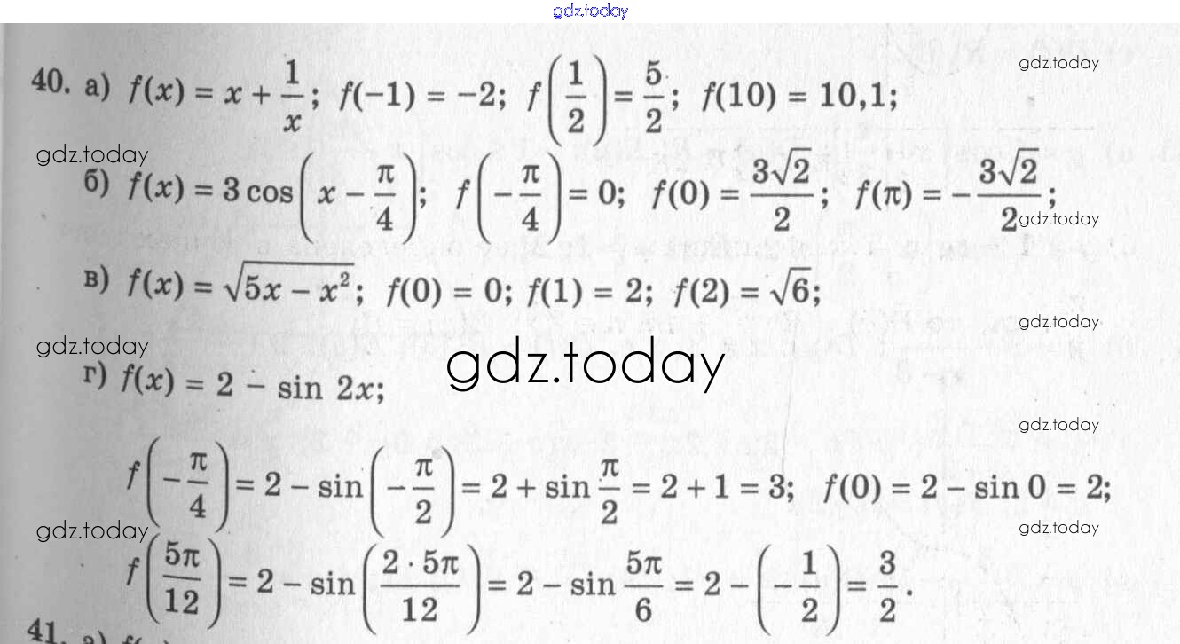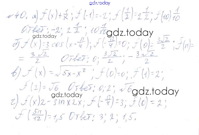 На страницах сайта gdz.today вы найдете учебный и вспомогательный материал, направленный на улучшения знаний школьной программы. ГДЗ - онлайн мир знаний Решения к упражнениям 40 Учебнику по Алгебре для 10-11 класса Колмогоров, Абрамов Просвещение 2008