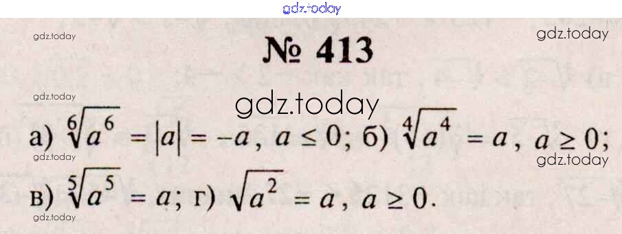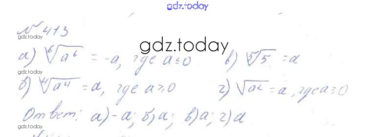 На страницах сайта gdz.today вы найдете учебный и вспомогательный материал, направленный на улучшения знаний школьной программы. ГДЗ - онлайн мир знаний Решения к упражнениям 413 Учебнику по Алгебре для 10-11 класса Колмогоров, Абрамов Просвещение 2008