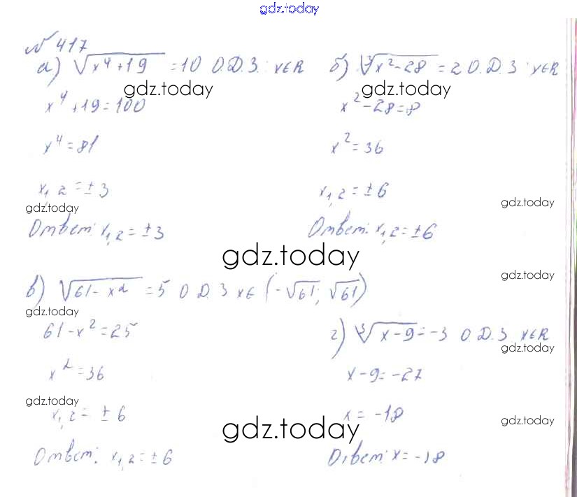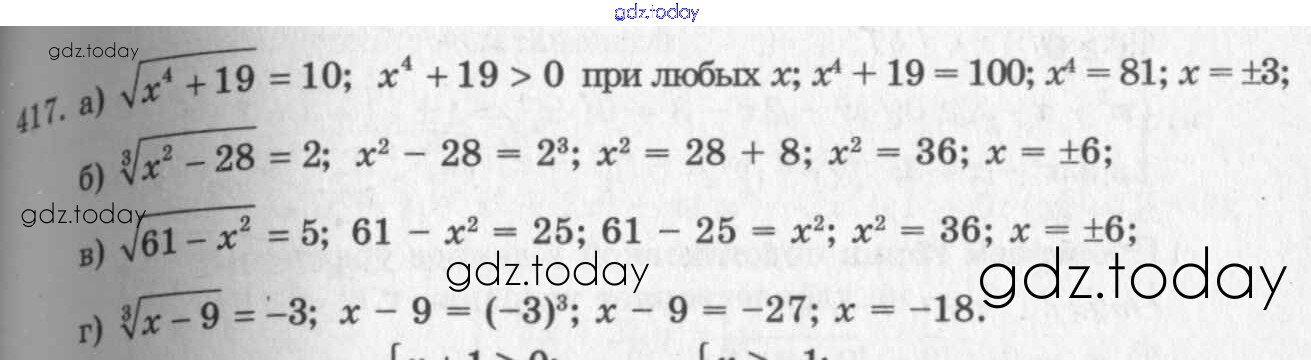 На страницах сайта gdz.today вы найдете учебный и вспомогательный материал, направленный на улучшения знаний школьной программы. ГДЗ - онлайн мир знаний Решения к упражнениям 417 Учебнику по Алгебре для 10-11 класса Колмогоров, Абрамов Просвещение 2008
