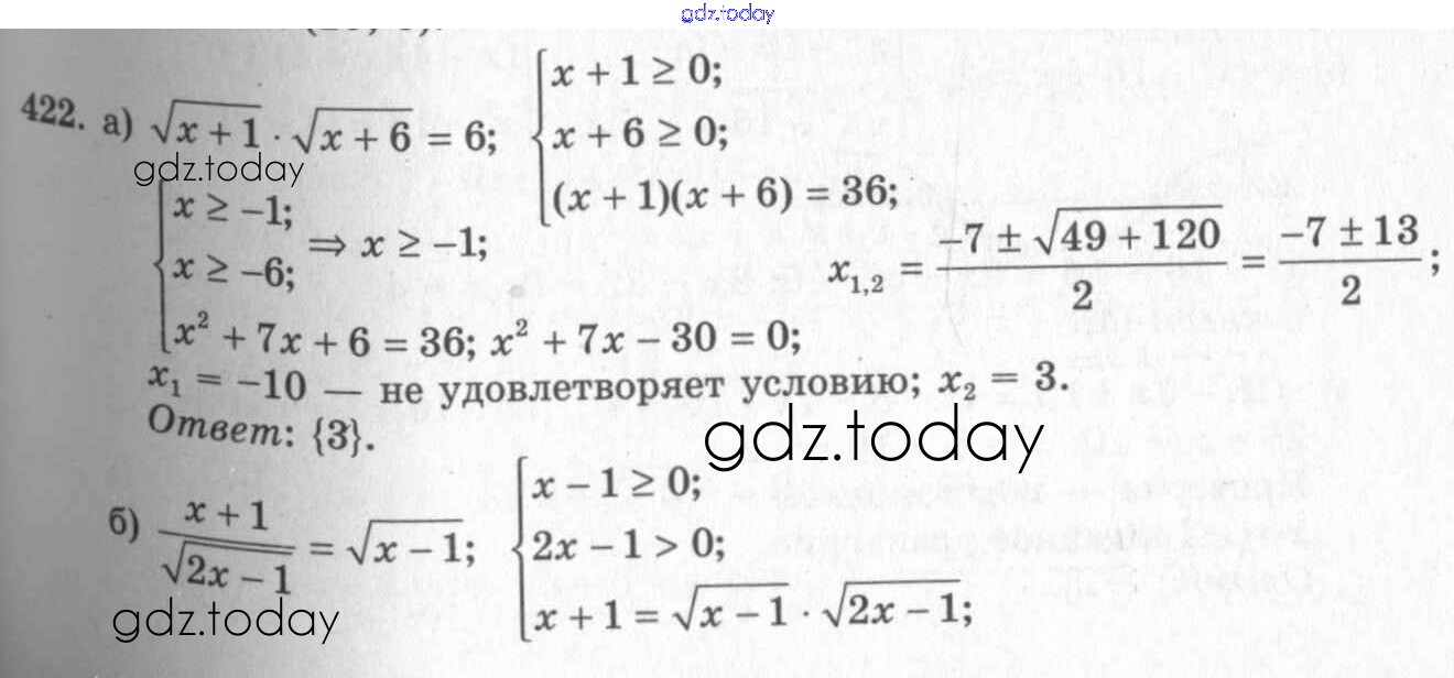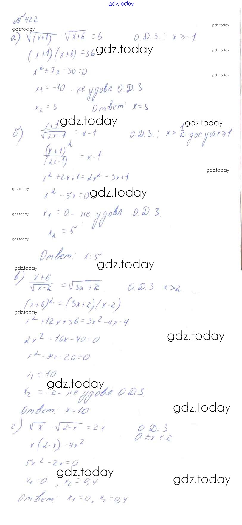 На страницах сайта gdz.today вы найдете учебный и вспомогательный материал, направленный на улучшения знаний школьной программы. ГДЗ - онлайн мир знаний Решения к упражнениям 422 Учебнику по Алгебре для 10-11 класса Колмогоров, Абрамов Просвещение 2008