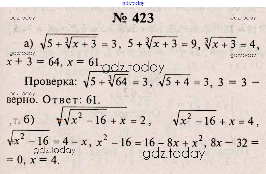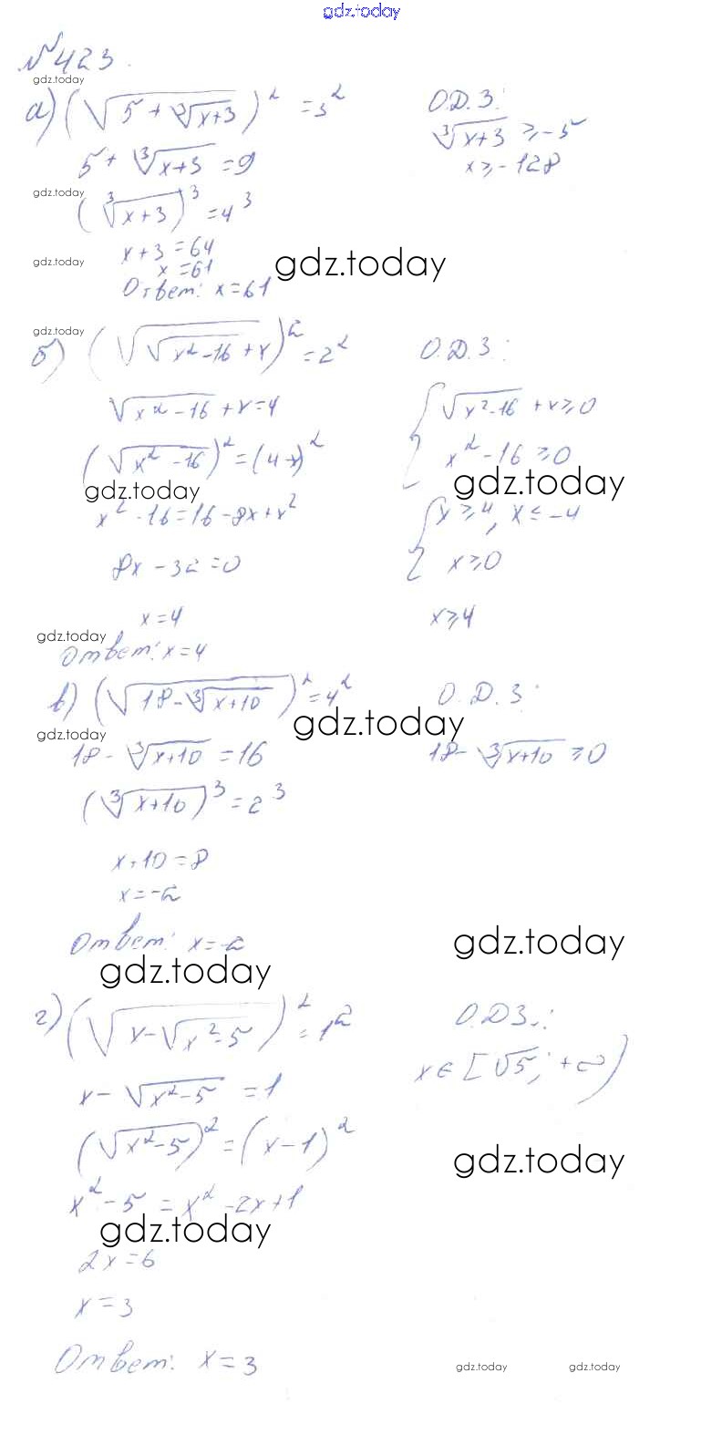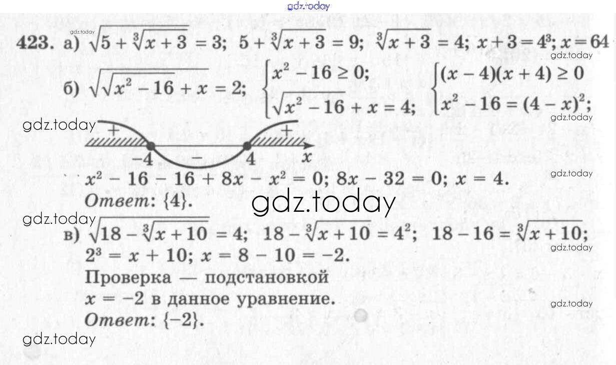 На страницах сайта gdz.today вы найдете учебный и вспомогательный материал, направленный на улучшения знаний школьной программы. ГДЗ - онлайн мир знаний Решения к упражнениям 423 Учебнику по Алгебре для 10-11 класса Колмогоров, Абрамов Просвещение 2008