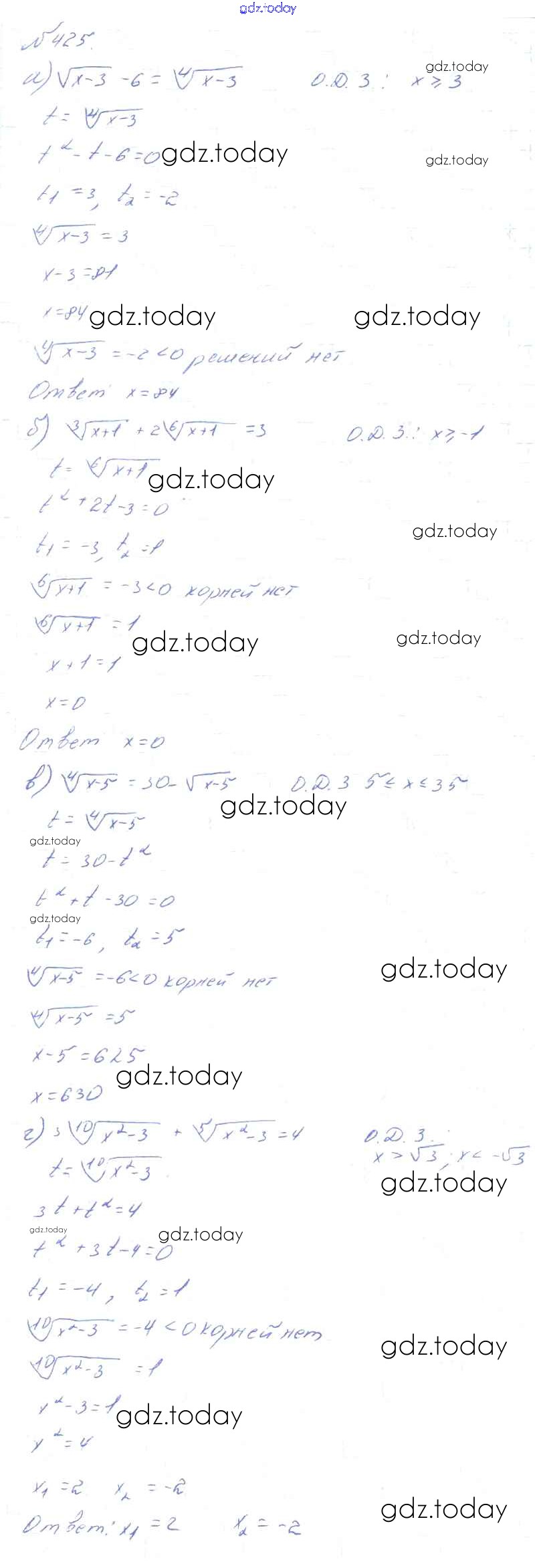 На страницах сайта gdz.today вы найдете учебный и вспомогательный материал, направленный на улучшения знаний школьной программы. ГДЗ - онлайн мир знаний Решения к упражнениям 425 Учебнику по Алгебре для 10-11 класса Колмогоров, Абрамов Просвещение 2008