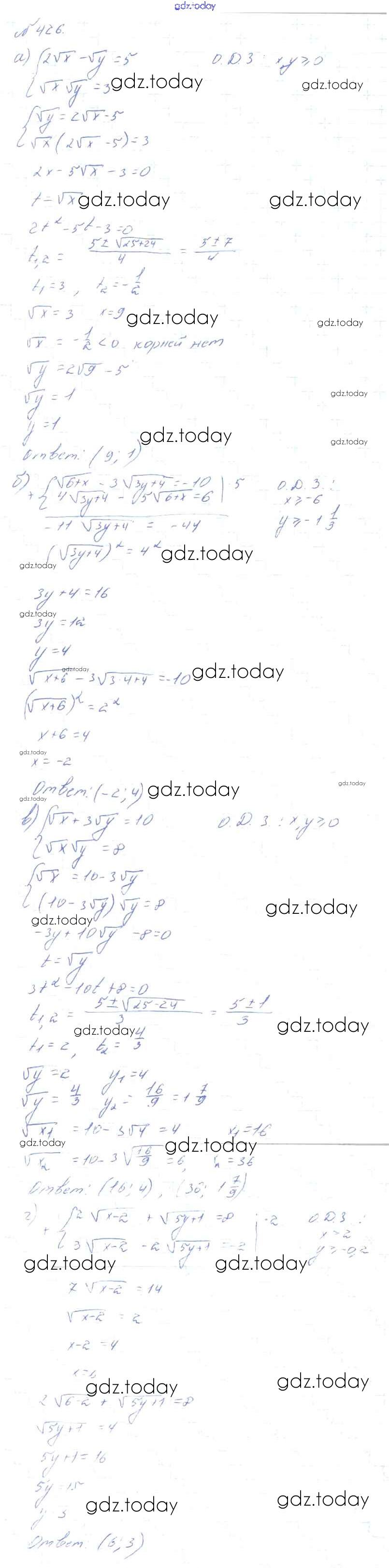 На страницах сайта gdz.today вы найдете учебный и вспомогательный материал, направленный на улучшения знаний школьной программы. ГДЗ - онлайн мир знаний Решения к упражнениям 426 Учебнику по Алгебре для 10-11 класса Колмогоров, Абрамов Просвещение 2008