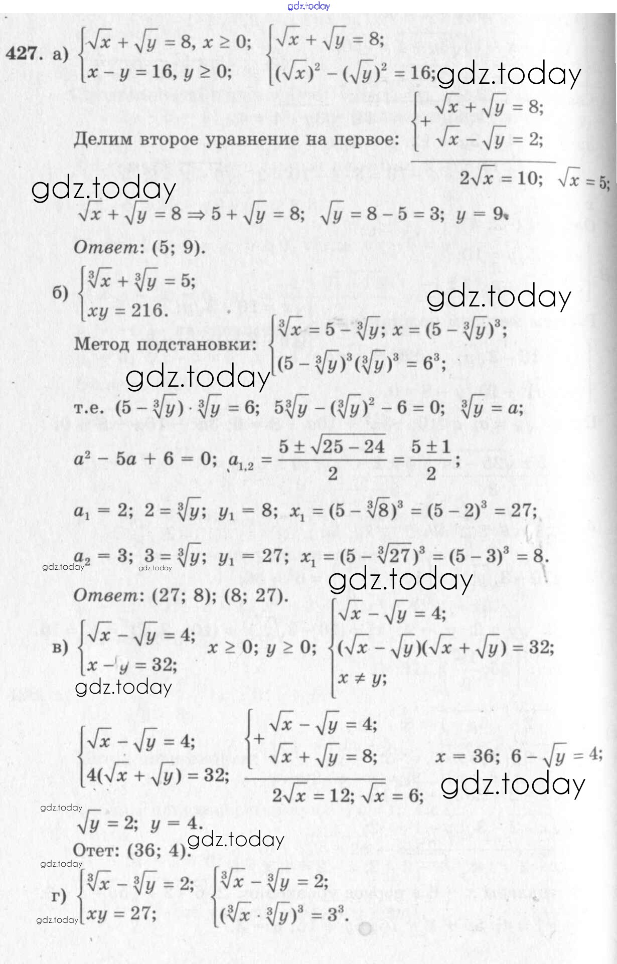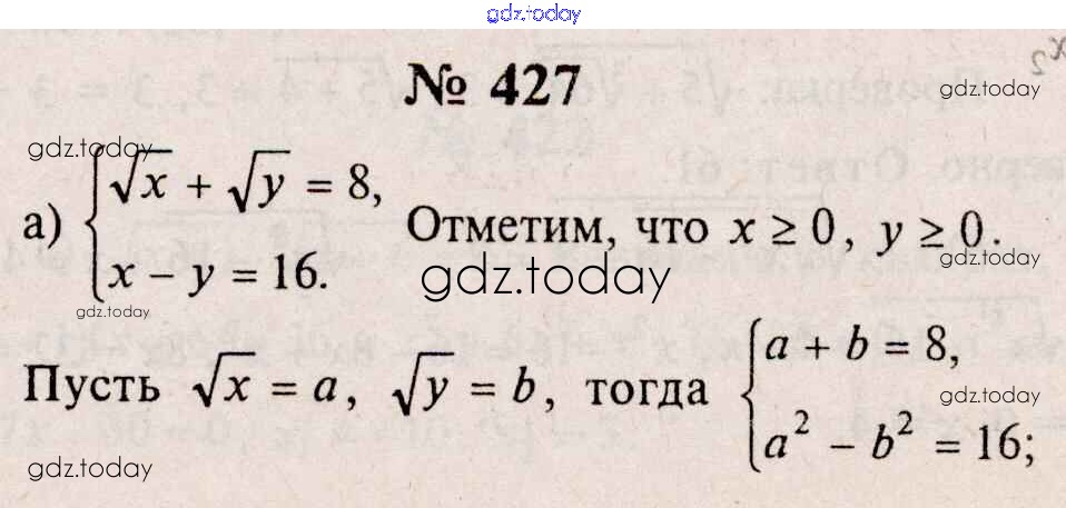 На страницах сайта gdz.today вы найдете учебный и вспомогательный материал, направленный на улучшения знаний школьной программы. ГДЗ - онлайн мир знаний Решения к упражнениям 427 Учебнику по Алгебре для 10-11 класса Колмогоров, Абрамов Просвещение 2008