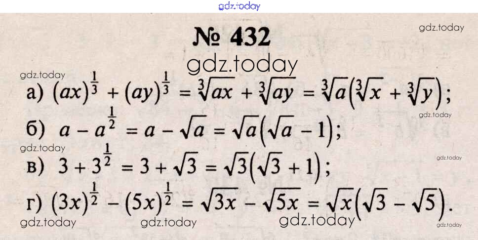 На страницах сайта gdz.today вы найдете учебный и вспомогательный материал, направленный на улучшения знаний школьной программы. ГДЗ - онлайн мир знаний Решения к упражнениям 432 Учебнику по Алгебре для 10-11 класса Колмогоров, Абрамов Просвещение 2008